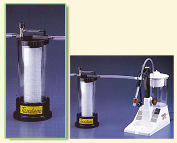 Der Anschluß einer Filterkartusche macht es möglich zugleich abzufüllen und zu filtrieren.