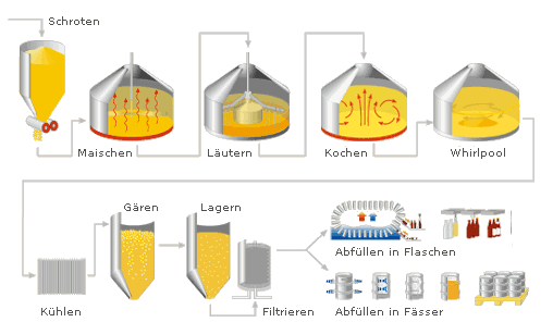 Prozesses beginnt beim Schroten und endet beim Anstellen.