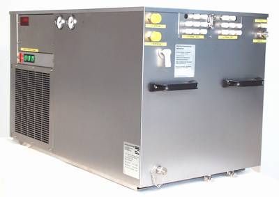 Ausgestattet mit: 2 Manometern, Hochdruck-Sicherheitspressostat, Niederdruck-Wassermangelsicherung, Kontrollleuchten für CO2- und Wassermangel, Vorkühl- und Kreislaufnachkühlschlange, VA-Kreislaufpumpe, 2 Messingdruckpumpen, 2 Carbonatortöpfen, Expansionsventil R404a