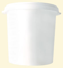 Plastikeimer 30 ltr Aus weißem Plastik (geeignet für Lebensmittel). Mit Deckel, nicht graduiert. Oft verwendet als Gärfaß für Bierbereitung, Weinbereitung