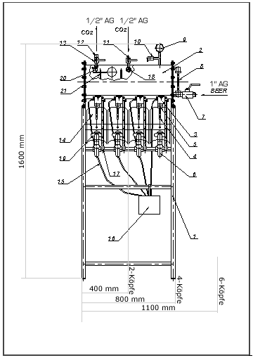 11.½” Kugelventile (CIP-Kopf, CO2-in) / 1/2" ball valves (CIP-head, CO2 in)